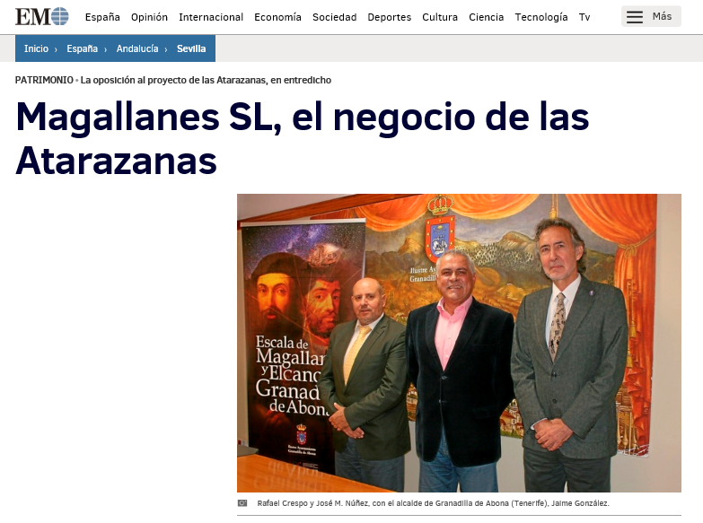 Una nueva noticia que salpica a nuestro municipio de Granadilla de Abona. Al final 'Costa Magallanes', tal y como indica el artículo de Carlos Mármol en el periódico El Mundo, es "una asociación privada", "un negocio particular", para gestionar fondos de instituciones nacionales e internacionales al margen del patronato de su entidad original. Hace tiempo que desde Coalición Canaria nos mostramos contrarios al cambio de denominación de nuestro litoral como 'Costa Magallanes',... pero después de leer este artículo queda tocado todo el proyecto, ya que no responde a un interés histórico o de promoción sino a un negocio. "Las ciudades candidatas a entrar en la Red tienen que pagar una cuota de entrada y un canon anual. La Red funciona con fondos públicos pero inscribe a su favor los recursos que, gracias a la intermediación institucional de Sevilla, recauda de otros organismos: subvenciones, donativos, herencias y legados".
