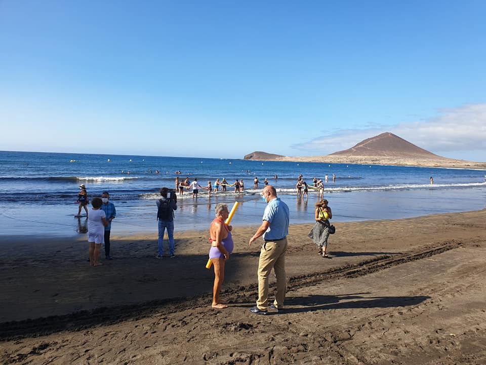 Nuestro alcalde, José Domingo Regalado junto a nuestra compañera concejala María de la O Gaspar, visitaron en la mañana de hoy lunes 10 de agosto de 2020, a las usuarias del programa de fisioterapia, en la playa de El Médano, que se desarrolla cada año para personas con fibromialgia y cáncer de mamá de nuestro municipio. Además, aprovecharon para ver en vivo los ejercicios que reciben más de 100 mayores en nuestra costa con el programa de gimnasia en la playa durante este verano.