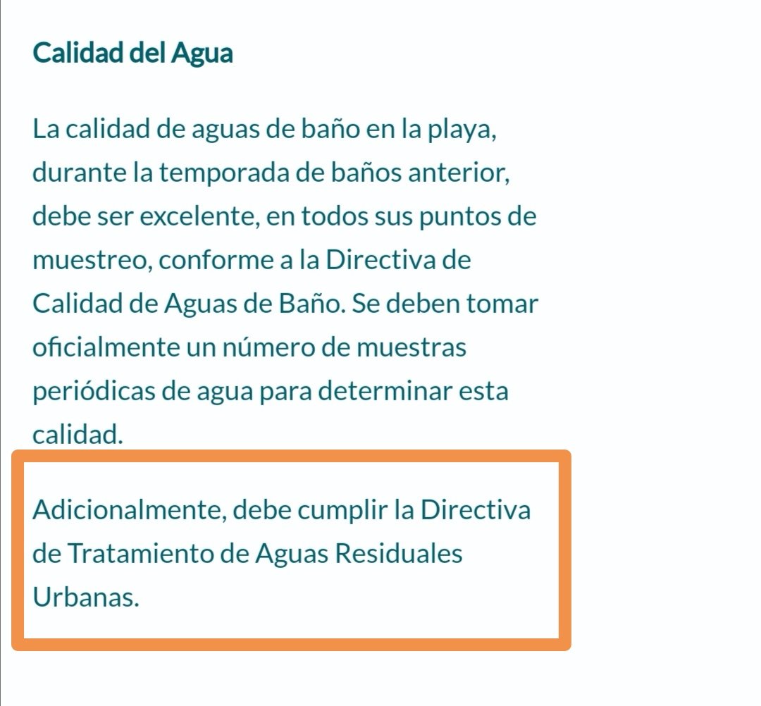 En primer lugar, le recordamos a la portavoz socialista que entre los requisitos para obtener la Bandera Azul está especificado como condición indispensable la de "cumplir la Directiva de Tratamiento de Aguas Residuales Urbanas". Es por ello que no se puede solicitar dicha Bandera por nuestro municipio porque carecemos de depuradora de aguas residuales e incumplimos con ese requisito.