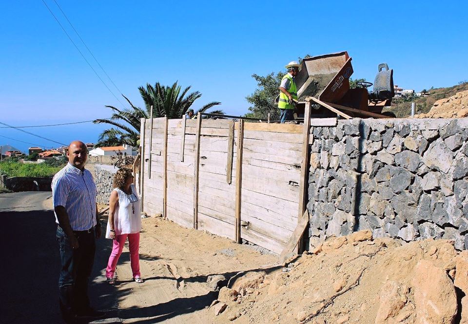 La Concejalía de Obras, está procediendo al acondicionamiento de la calle Canales Alta, en el enclave de la Cruz de Tea. Nuestro alcalde, José Domingo Regalado, y la concejala de Obras, María Concepción Cabrera, visitaron recientemente este punto y en palabras del alcalde, "se trata de una obra necesaria y que da respuesta a las demandas de los usuarios de esta vía de comunicación en las medianías del municipio". Traslada, además, su agradecimiento por la cesión gratuita de una parte de terreno para la mejora de esta vía pública, por parte de Francisco Luis y Mercedes Marrero, así como de Brett Alistarir y María del Pilar Pérez. Conchi Cabrera explica que las obras tienen como finalidad la ampliación de la carretera y garantizar las seguridad de esta vía pública tan transitada. Nuestro alcalde prevé en próximas fechas la ejecución de otro proyecto de continuación en esta vía, consistente en la adecuación de la canalización del agua y el asfaltado integral.